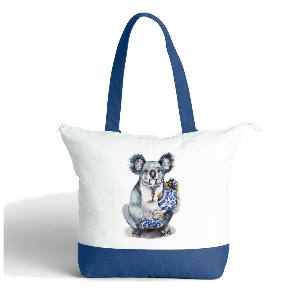 A zippered sturdy tote featuring my koala tea design printed on the side.